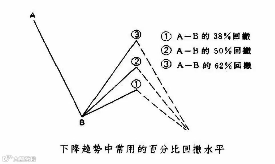 回撤的相关数据有三个:38%,50%,62%。三组数据分别代表,以上涨趋势为例:
