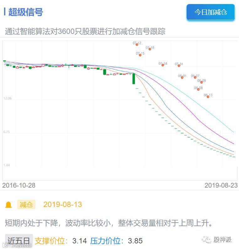 通过对3600只股票进行加减仓信号跟踪,股神派大数据从7月12日ST信威(600485.sh)复牌就发出了减仓信号。