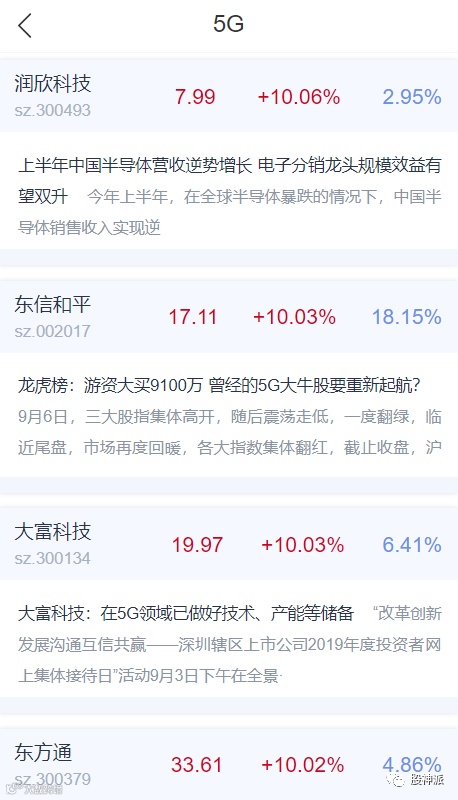 今日,5G板块继续强势上涨,表现远超同期上证指数上涨的3.92%和深证成指上涨的4.89%。板块内个股普涨,润欣科技、意华股份、剑桥科技等多股涨停。