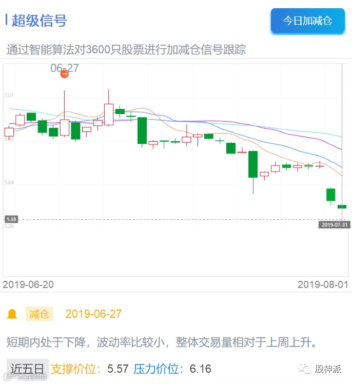 通过对3600只股票进行加减仓信号跟踪,股神派大数据在6月27日对拉夏贝尔(sh.603157)发出了减仓预警,超级信号表示: