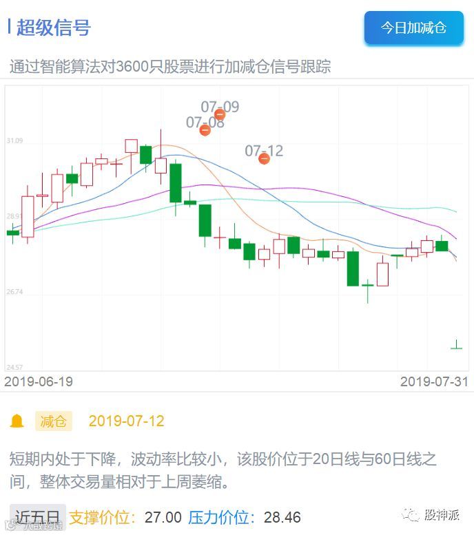 股神派诊股页面在7月8日、7月9日、7月12日都给出了减仓信号,超级信号表示