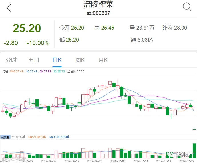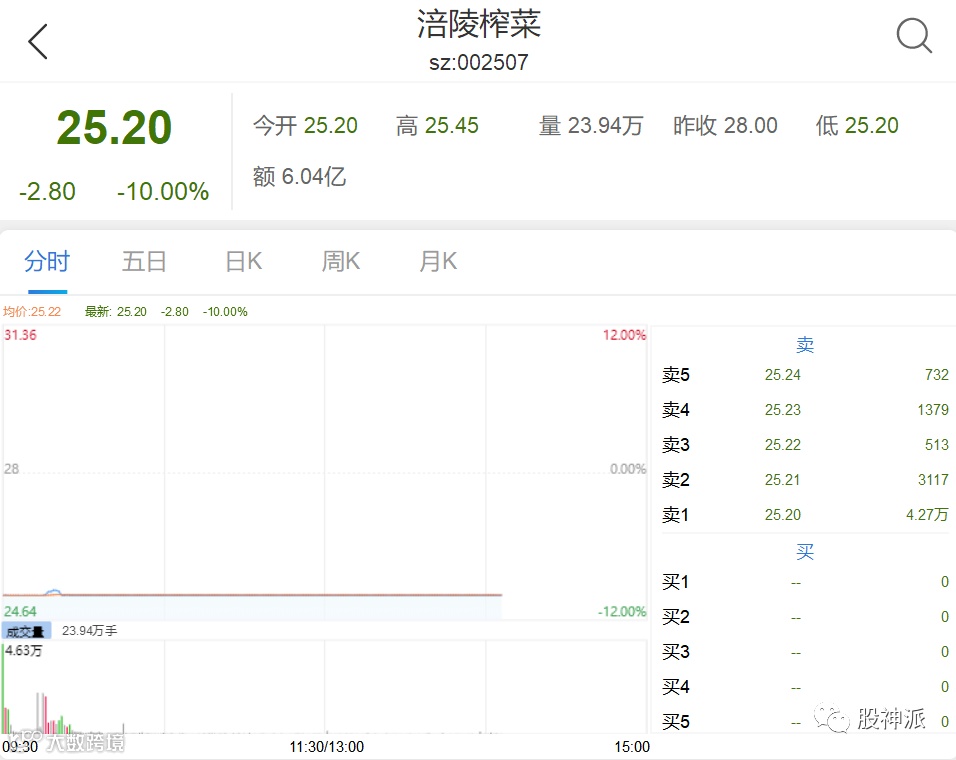 涪陵榨菜开盘一字跌停,