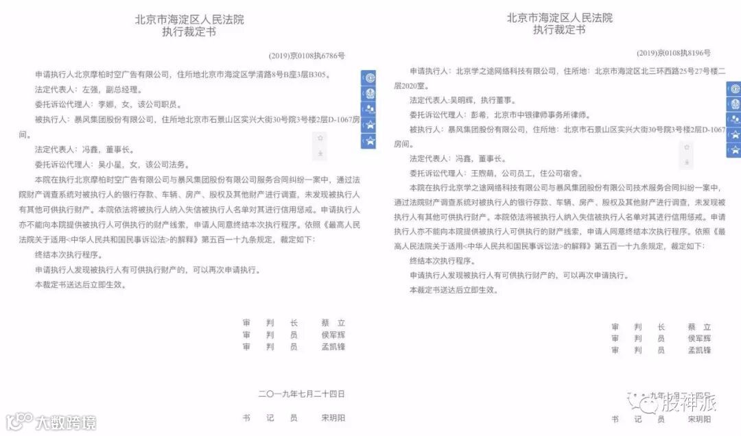 事实上,暴风被列入失信名单已经不是第一次了。据相关资料显示,暴风集团早在今年3月14日、4月8日和6月14日,已经多次因“全部未履行”缴纳执行案款而被法院立案,不仅如此,还被列入了失信被执行人名单,总共涉及金额约242.2万元。