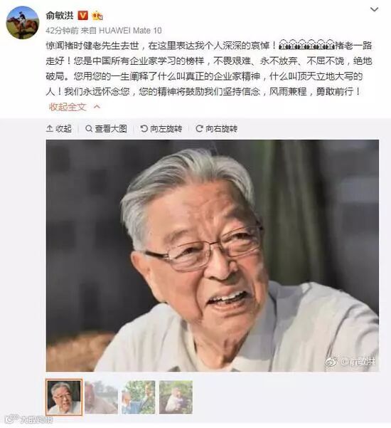 2.马云王健林俞敏洪、王石等发文悼念褚时健:影响企业家的企业家
