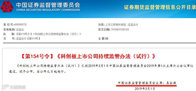 值得一提的是,这也是证监会新主席易会满签出的首份主席令。