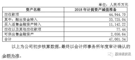 又一家券商对2018年存在减值迹象的资产计提准备金。