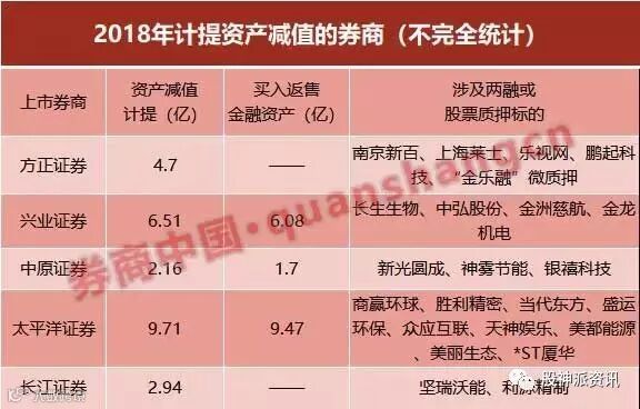 更有甚者,太平洋证券、兴业证券等券商2018年资产减值计提的金额分别高达9.71亿和6.51亿。