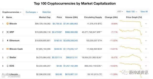 比特币失守6000美元的关键支撑位,一度跌至一年以来的5555美元,创一年以来新低。以太坊自9月份创下167美元的低位后,今日凌晨一度跌至168美元,距离击穿167美元的底部价格仅一步之遥。在今日早晨短暂反弹后,比特币暂报5739.32美元,跌幅9.58%;以太坊暂报182.55美元,下跌11.53%,市值被XRP超越。而分叉的主角比特币现金在OKEx上一度迫近400美元关口,暂报448.2美元,跌幅为14.36%。