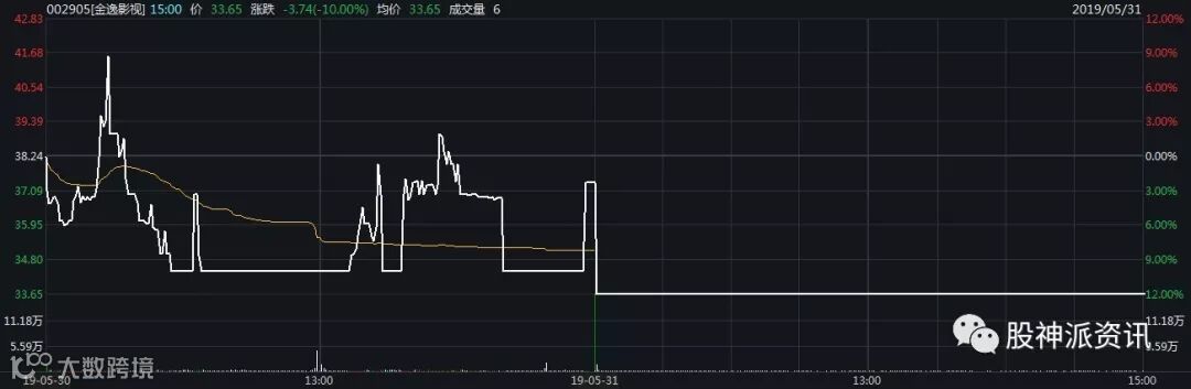 5月31日开盘后,金逸影视一字跌停,封单高达9万手,最高至跌停板上方一分钱33.66元,换手率达30%;昨日连续四日涨停的金逸影视上演“心肺复苏”走势,大幅震荡19%。