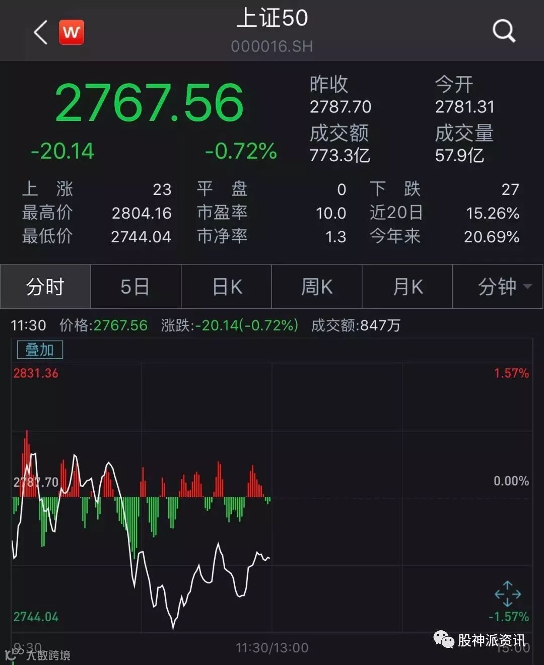 但实际上,昨日收盘时上证50走势已有所回落。以最高点买入计,50ETF昨日的现货收盘价2.816元/份已大幅低于2.8581元/份(行权价2.8元/份+成交价0.581元/份),这意味着昨天最高点买入的投资者已浮亏-72.46%。