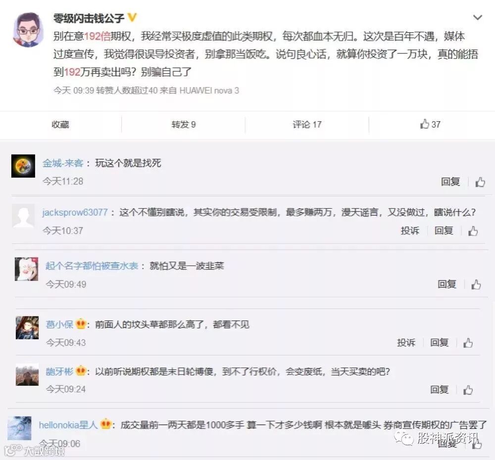 由于股票期权交易规模较小、流动性一般,且到期后能否行权存在不确定性,风险较大。就“50ETF购2月2800”期权合约而言,若上证50指数明天之前无法上攻甚至回落,该合约价格将大幅下跌,投资者面临极大风险,高位接盘投资者或很难全身而退。