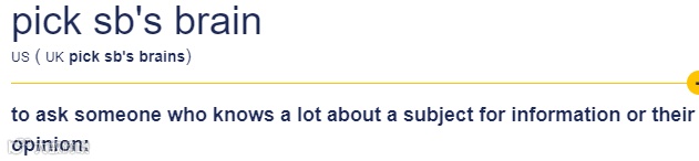 所以,“pick your brain”真正的意思,就是“向你请教;向你学习;讨教”。