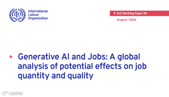 联合国直属机构国际劳工组织(简称ILO)发布了,《生成式AI和就业:对工作数量和质量的潜在全球影响分析》报告。(报告地址:https://www.ilo.org/global/publications/working-papers/WCMS_890761/lang--en/index.htm)