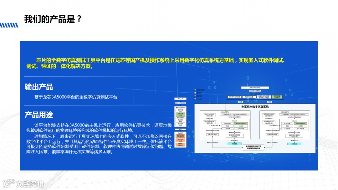 公司的方案是基于国产化平台的全数字仿真系统来完成软件早期的开发和调试工作,并以此为基础引入自动化测试工具实现高效高质量测试。这种方式不仅可以帮助开发人员提高系统开发、调试和测试的效率,还可以大大改善包括产品研制周期、成本、质量等重要指标。