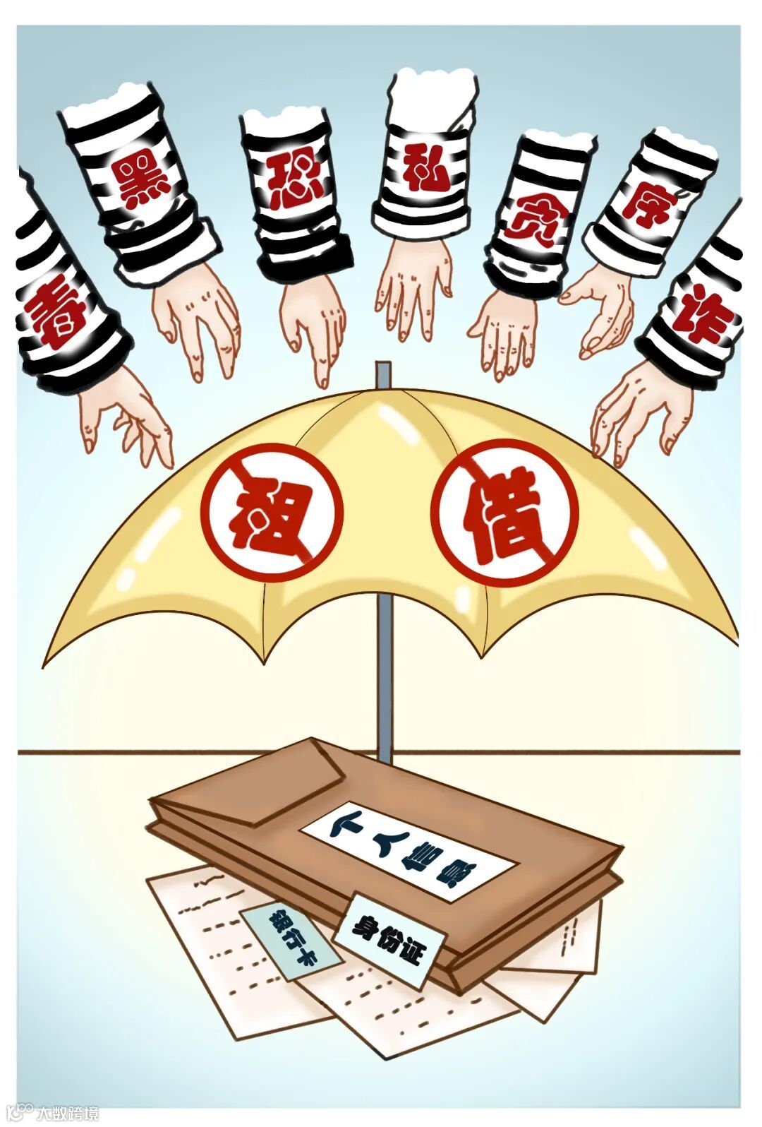 温馨提示:不要出租或出借自己的身份证件、账户、银行卡等个人信息,贪官、毒贩、诈骗分子、恐怖分子以及其他罪犯都可能利用您的身份证件、账户、银行卡进行洗钱和恐怖融资活动,借用您的名义从事非法活动,可能成为他人犯罪活动的"替罪羊"。不出租、出借身份证件、金融账户、银行卡既是对您的权利的保护,又是守法公民应尽的义务。
