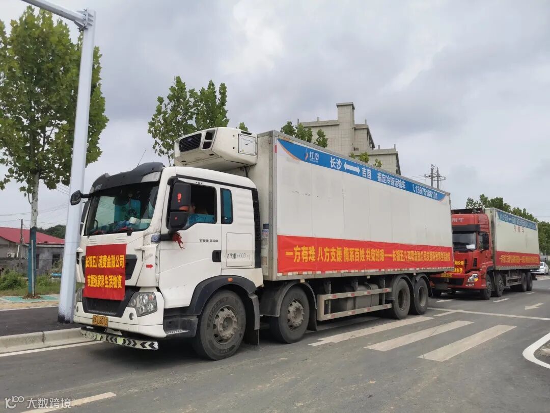 (装载长银五八消费金融捐赠物资的运输车即将发车)