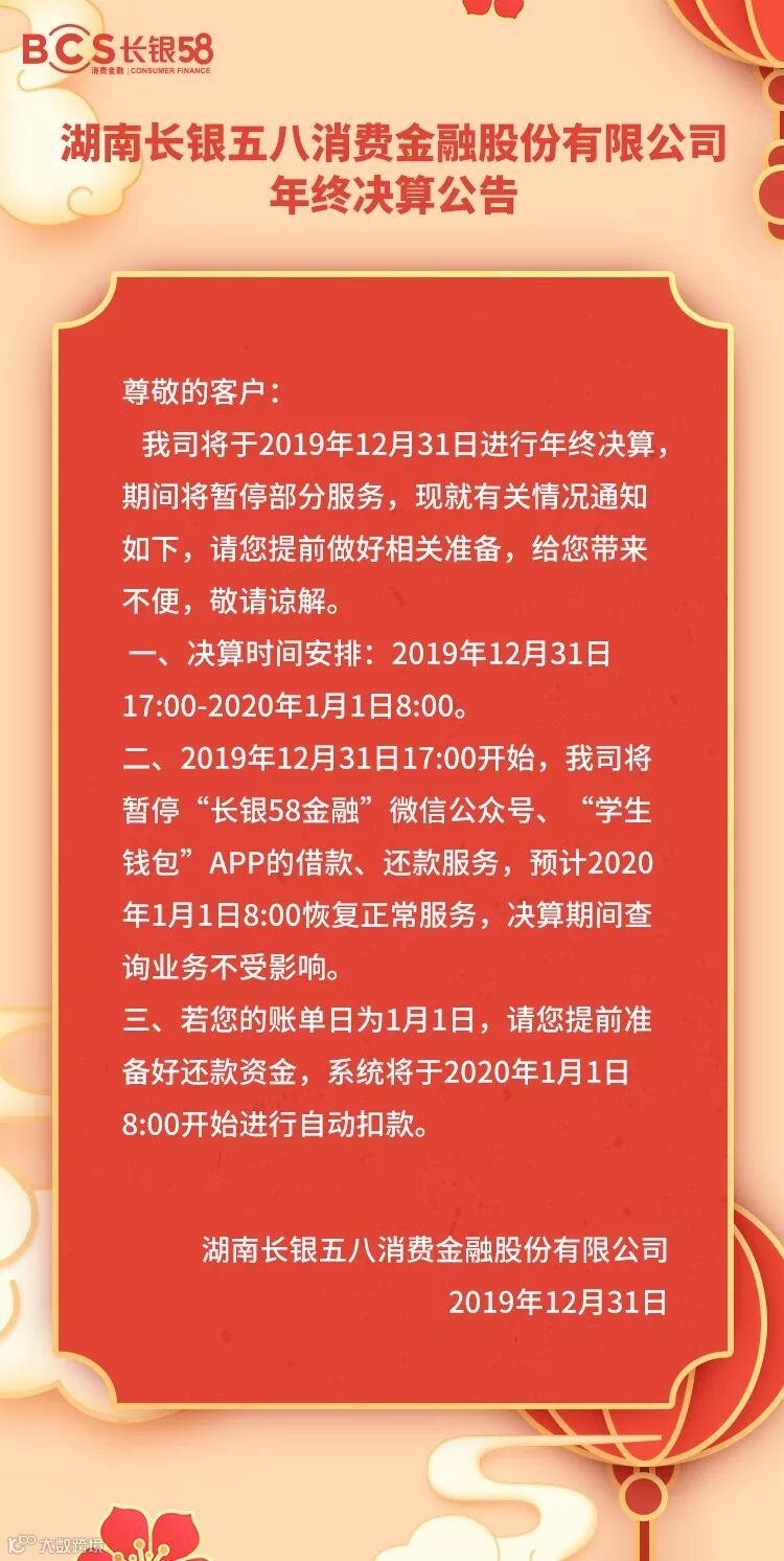 导读:湖南长银五八消费金融股份有限公司年终决算公告