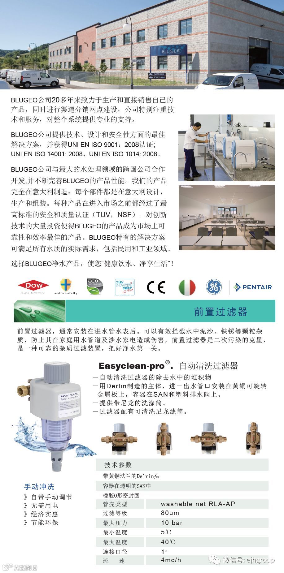 ejhgroupBLUGEO公司20多年来致力于生产和直接销售自己的产品,同时进行分销网点建设,公司特别注重技术和服务,对整个净水系统提供专业的支持。产品完全在意大利制造:每个部件都是在意大利设计,生产和组装。Blugeo特有的解决方案可满足所有水质的实际需求,包括民用和工业领域。