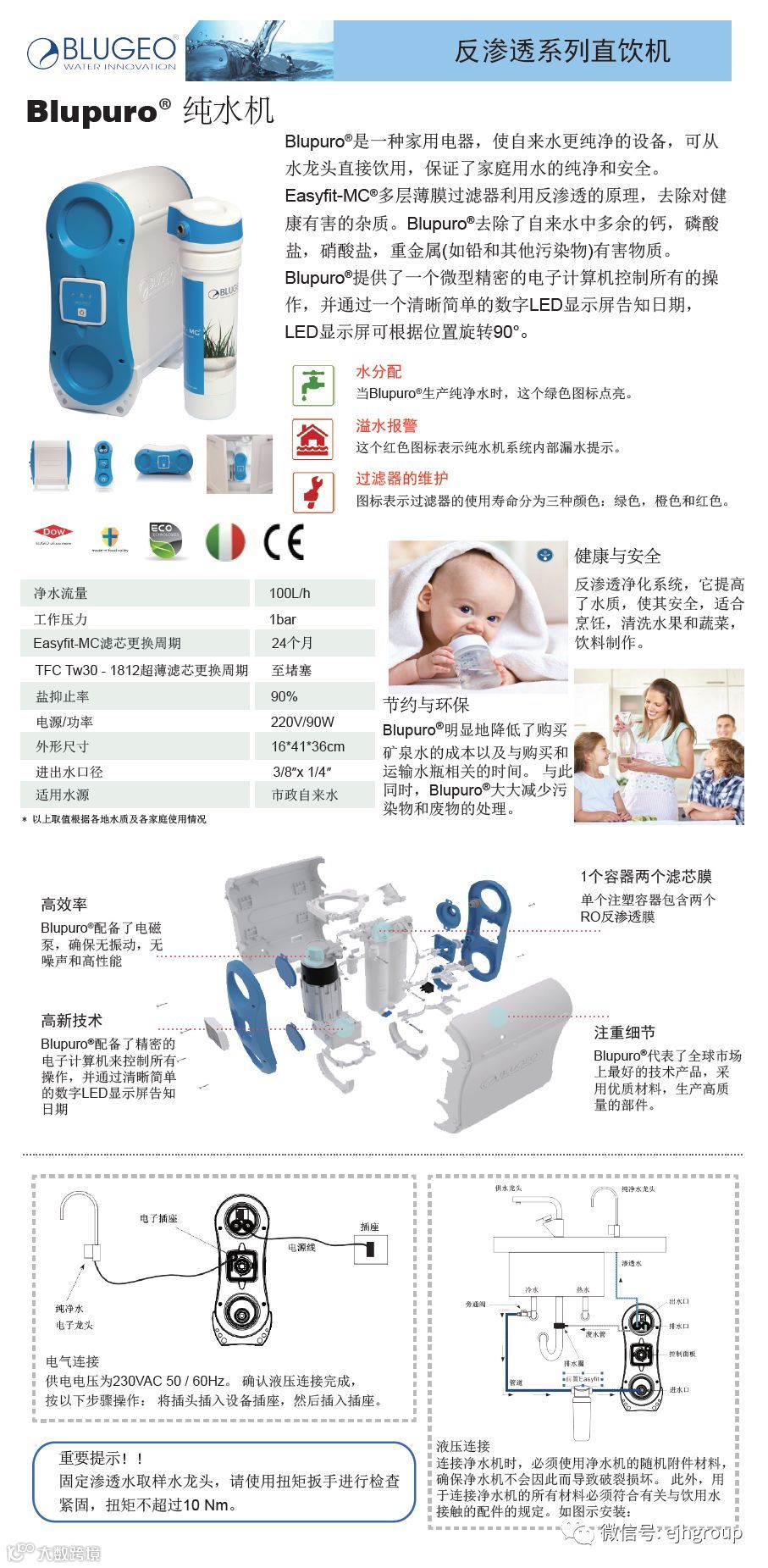 BLUGEO公司20多年来致力于生产和直接销售自己的产品,同时进行分销网点建设,公司特别注重技术和服务,对整个净水系统提供专业的支持。产品完全在意大利制造:每个部件都是在意大利设计,生产和组装。Blugeo特有的解决方案可满足所有水质的实际需求,包括民用和工业领域。