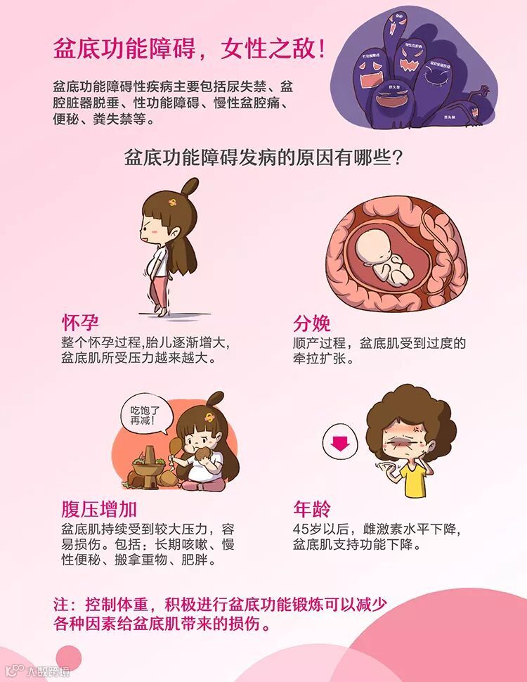 怀孕:整个怀孕过程,胎儿逐渐增大,盆底肌所受压力越来越大。