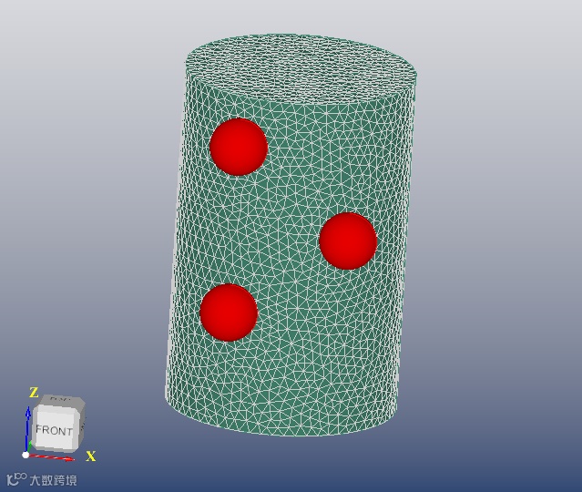 在GFE中建立砂浆-骨料简化模型进行测试。圆柱体砂浆直径40mm,高60mm,采用C60混凝土材料模拟,热传导系数为0.0009;骨料采用直径10mm的小球模拟,材料为线弹性材料,热传导系数为0.0026,热膨胀系数设为1.248E-06。