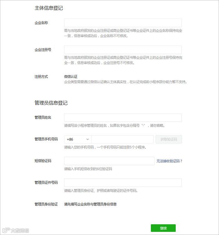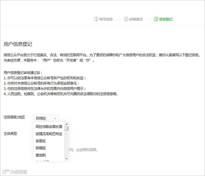 注:海外主体注册小程序暂只支持企业类型注册。