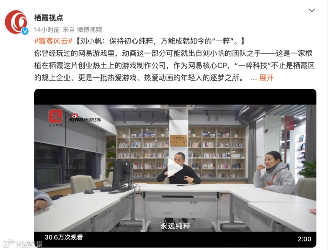 专访过程中,“霞客风云”第三季工作人员与一粹科技的同事进行深入交流,了解到这是一家根植在栖霞这片创业热土上的游戏制作公司。作为网易核心CP,“一粹科技”不止是栖霞区的规上企业,更是一批热爱游戏、热爱动画的年轻人的逐梦之所。