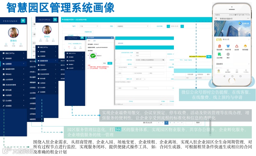 从园区端看,“智慧园区管理系统”不仅让服务更为标准化、精细化,提高处理效率,降低运营成本,也让服务更为多样化、系统化,让园区更好地满足入驻企业的需求。