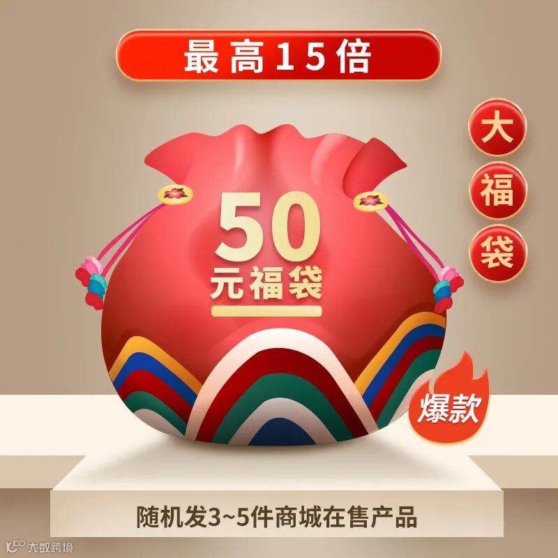 ①大福袋 :50元!随机发3~5件商城在售产品!福袋价值最高可拿15倍!