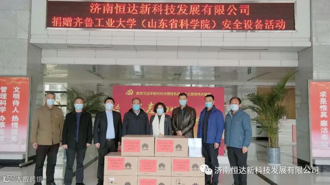 庚子鼠年不一般,疫情来袭,全民抗战。为助力高校加速校园智能安防系统建设,3月27日上午,济南恒达新科技发展有限公司总经理李娟携公司员工抵达齐鲁工业大学(山东省科学院),为学校捐赠了120套华为机器视觉AI智能摄像机,旨在保障校园师生及环境安全,助力学校抗击疫情,创建平安、智慧校园。