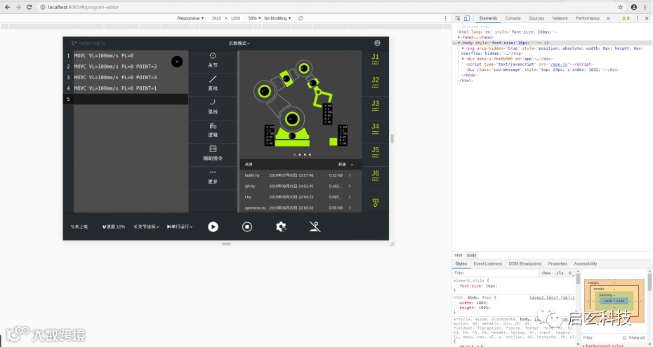 设备:SENOU机器人控制系统,笔记本电脑,大屏显示器