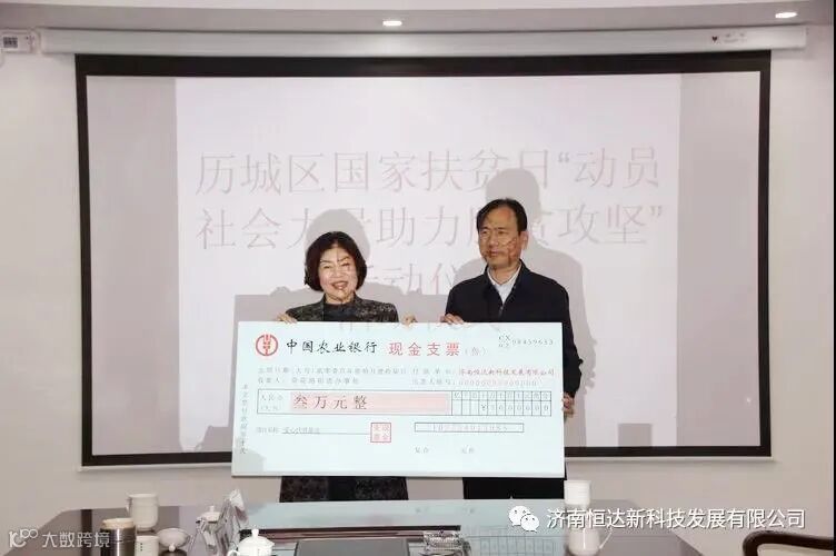 2019年10月17日是第六个国家扶贫日,李娟总经理参加了国家扶贫日“动员社会力量,助力脱贫攻坚”启动仪式,向济南市历城区荷花路街道捐助了3万元爱心扶贫基金,用于即时帮扶户和脱贫监测户的即时帮扶。李娟总经理将每一名员工的爱心传递到了社会的角角落落。