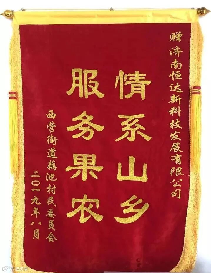 2019年由于市场行情报不好,济南南部山区的果农的桃子销路却成了问题。历城区扶贫办牵线下,济南恒达新与南部山区扶贫办对接协调,助力解决当地农产品滞销问题,这是历城区扶贫办与南部山区扶贫办扶贫协作的内容之一。“情满山乡,服务果农”的锦旗是果农们的一份感激。