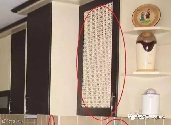 ▼问题4 热水器不能被厨柜封闭包裹:热水器工作时需要空气流通,包裹在橱柜内,虽然起到了美观的效果,但是热水器由于没有空气流通而造成燃烧不充分一氧化碳聚集,容易存在安全隐患。
