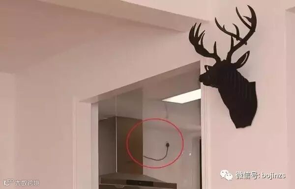 ▼问题2 油烟机插座在墙面影响美观:油烟机插座应预留在厨房吊顶内,以达到美观的效果。