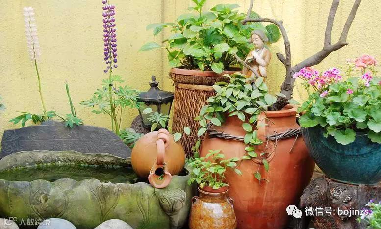 ▲ 各种盆盆罐罐,石头小景都是风景