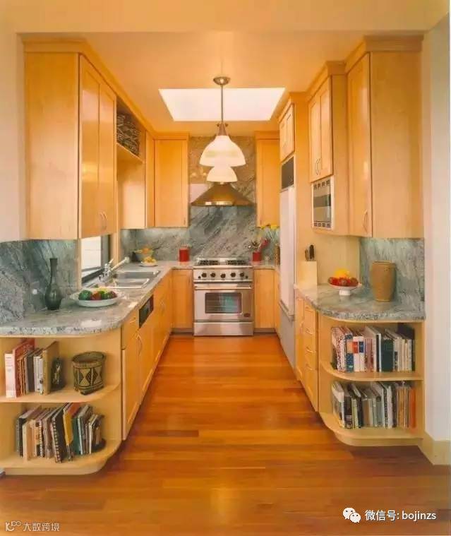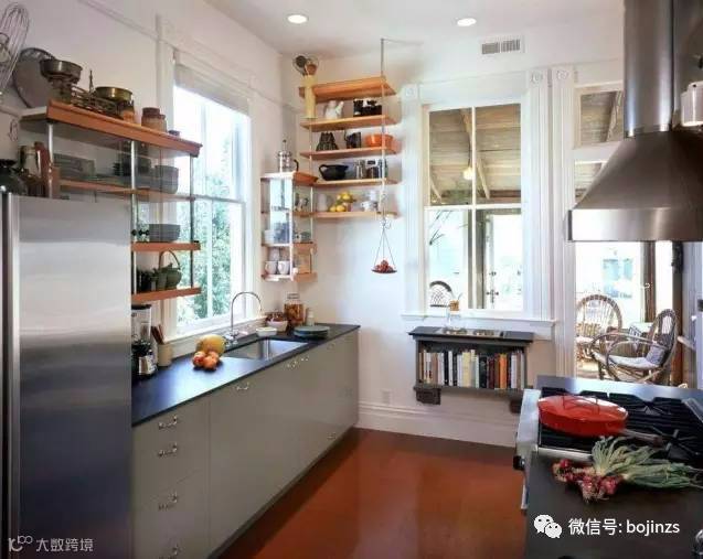 ▲厨房的拐角处,也是一个很不错的藏书格。放置一些菜谱,实在再好不过了!