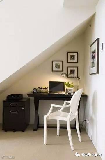 ▲放在楼梯旁的书房设计,当然,这个比较适合楼房,在顶楼做的独立空间最好了,不怕被上下楼的打扰。安静,淡然。