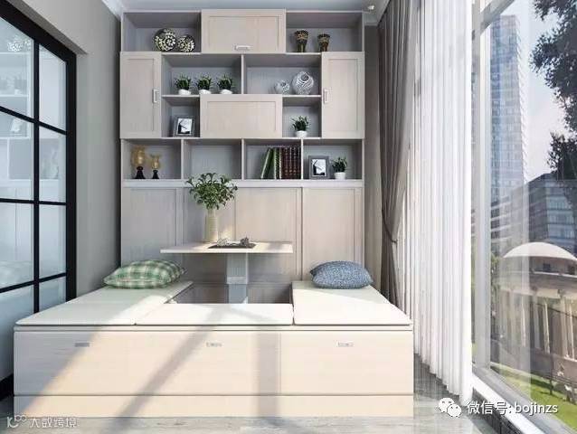 ▲这是一个组合式的榻榻米设计,阳台太大,想要晾衣服又想做成休息区域,可以选择这种设计哟。暖暖的阳光照射进来,是不是很美呢?