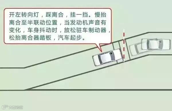 扣100分的情况:1、汽车前保险杠位于虚线以外2、起步时后溜大于30cm3、起步时间超过30秒