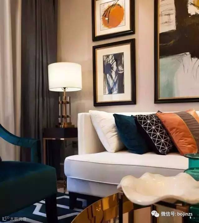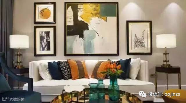 ▲在对称的设计中,加入不对称的装饰画,显得非常有个性。