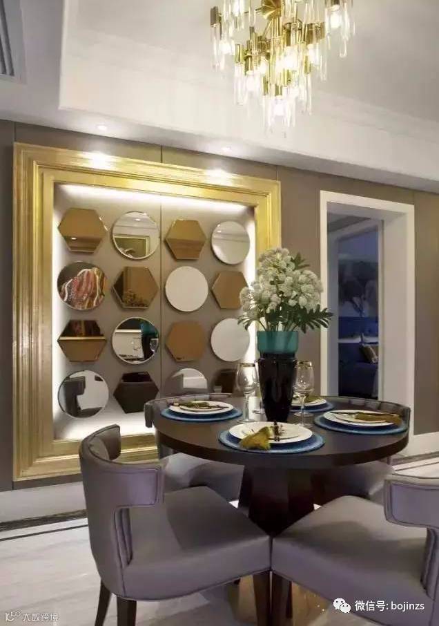 ▲用镜子做墙面装饰的方法虽然普通,但换成了时尚的金属镜子,呈现出来的效果却不普通。