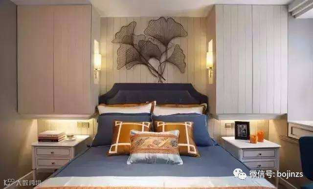 ▲床头做了两个大的储物柜,让床头看上去有内嵌的感觉,给人一种被包围的安全感。