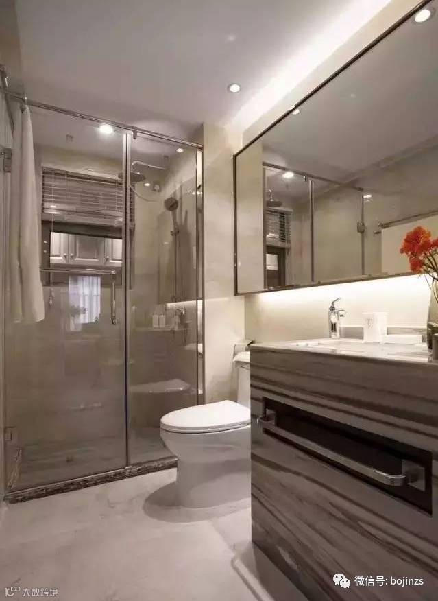 ▲占据半面墙的大镜子,让卫生间显得更大、更明亮。
