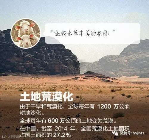 】这不是危言耸听!①全球每年约700万人因空气污染死亡;②每年至少6万种生物灭绝;②每分钟全球被砍伐的森林面积相当于36个足球场;③每年600万公顷的土地变沙漠……地球家园的现状,关乎你我。今天,世界地球日,保护还是破坏,决定权在你手中。转发,承诺!