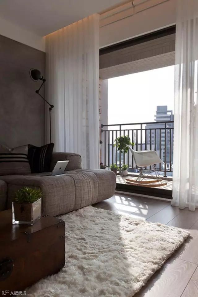 开放式阳台:主要是注意防水防潮。一般地面材质常见的设计方案是:防腐木和瓷砖,马赛克和石材也是不错的选择。防水一定要留好坡度,阳台和客厅之间至少2~3公分的高度差,有利于排水通畅。
