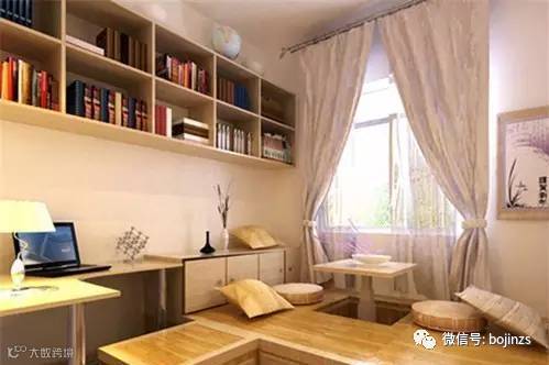 值得注意的是,尤其是小户型的家居,因为空间高度较低,面积狭小,如果选择复杂尤其是太过规则的天花吊顶,在设计榻榻米后就很容易造成空间上的压抑和强烈感。因此,针对小户型榻榻米设计,还应选择简洁单薄的吊顶设计,或者不做吊顶,也可以选择非规则的吊顶设计,还可以打破常规材质,尝试一些新材质,既可伸展空间又不乏创意。