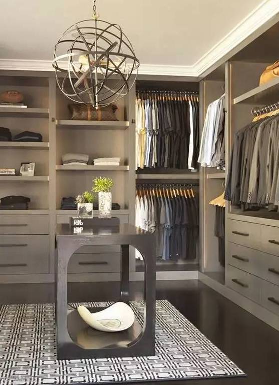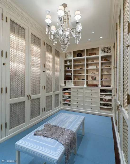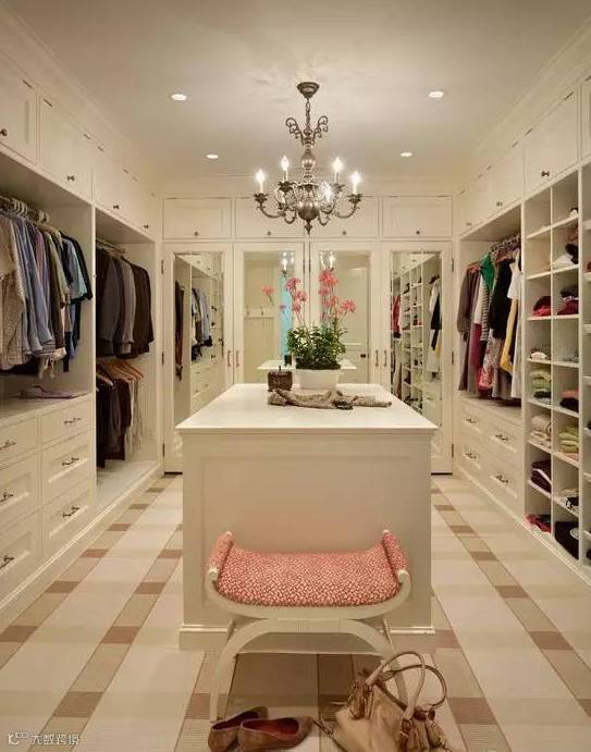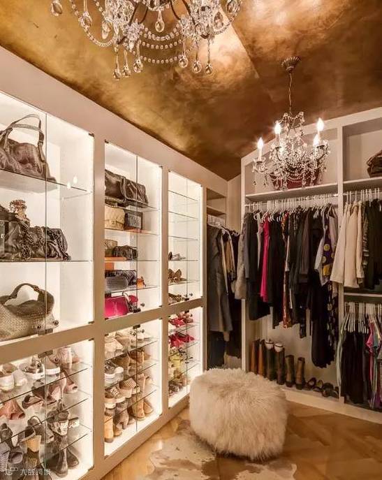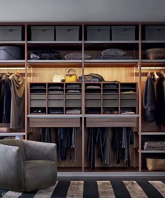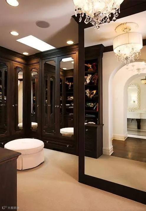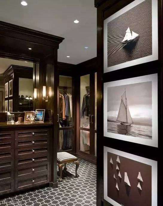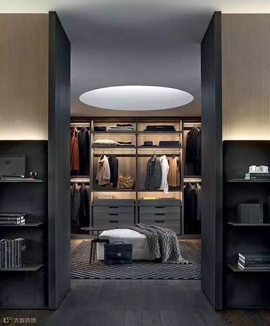 3. 如果是独立的衣帽间,设计时要合理安排灯光、色调等元素,使之即融入室内整体风格,又保持独特的情调。