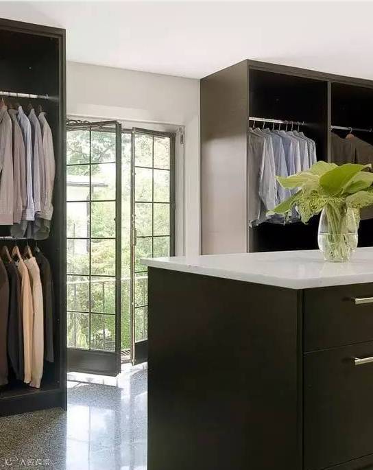 适合对象:开放式衣帽间适合于那些希望在一个大空间内解决所有功能的年轻人。但即便是开敞式也要有一定的私密性,以免使大空间显得过于零乱。