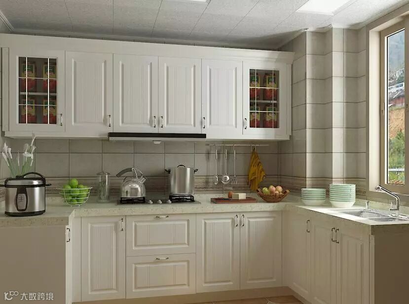 突显厨房天花板高度最好的办法是,把所有的橱柜堆叠到天花板下。即使最上方的橱柜你根本用不到,它起到的装饰效果也是非常好的。